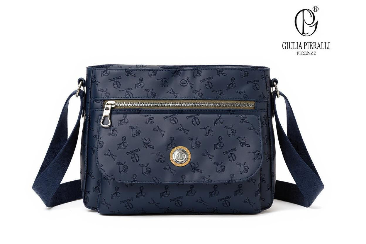 Borsa firmata Giulia Piarelli tasche con zip capiente e comoda a tracolla fantasia logo modello 02