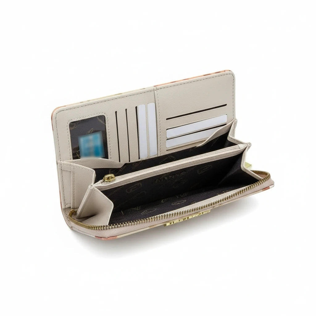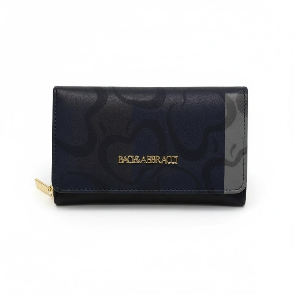 Portafoglio firmato Baci&Abbracci multitasche fantasia logo impermeabile zip carte banconote