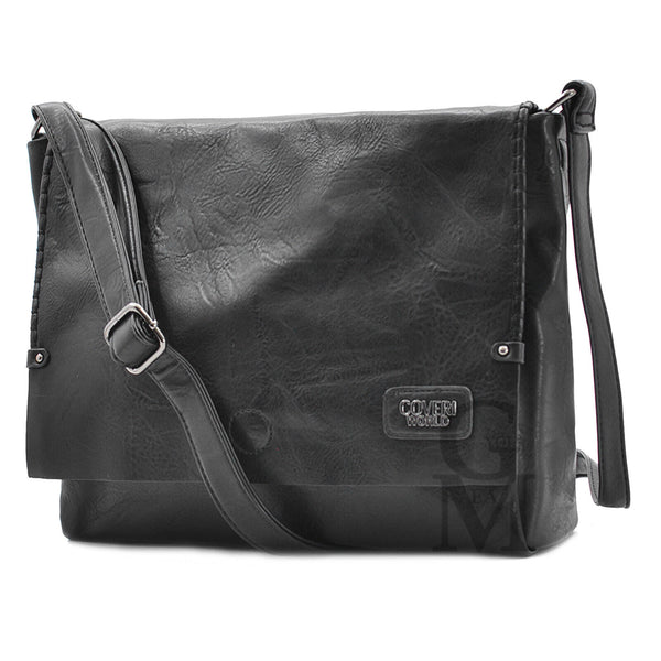 COVERI borsa uomo donna vintage pelle venata nera tracolla postina capiente moda