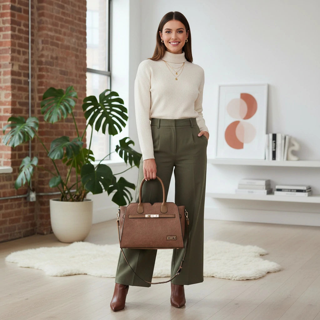 CHARRO - Borsa a bauletto trapezio semi rigida simil pelle con tracolla elegante casual