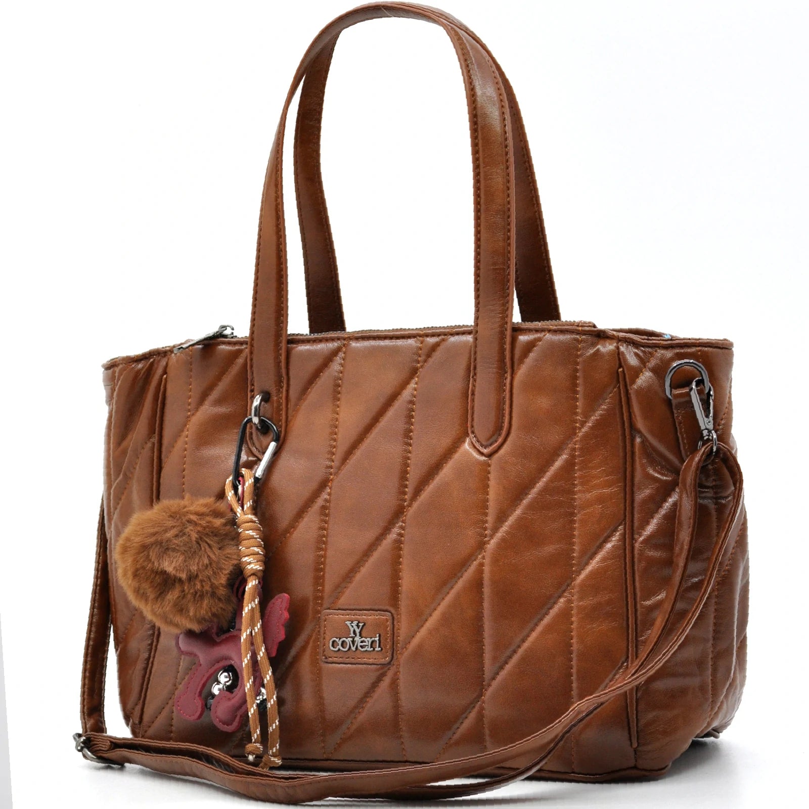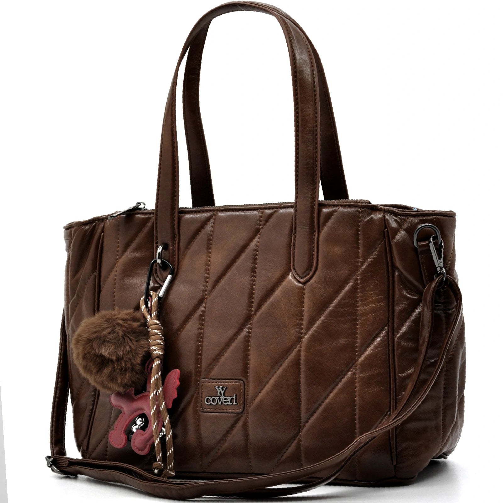 Borsa + OMAGGIO charms bauletto biker firmato YYCOVERI donna spalla a tracolla simil pelle trapuntata effetto lucido