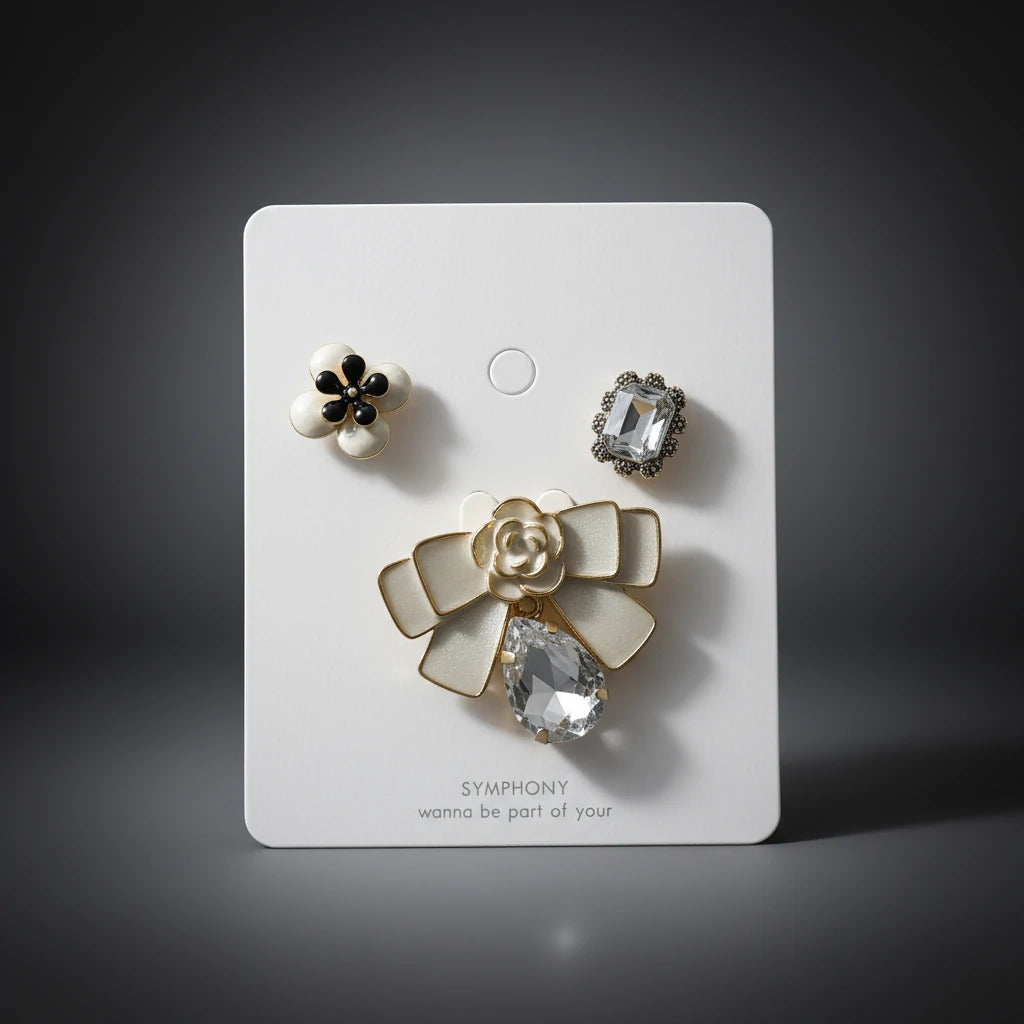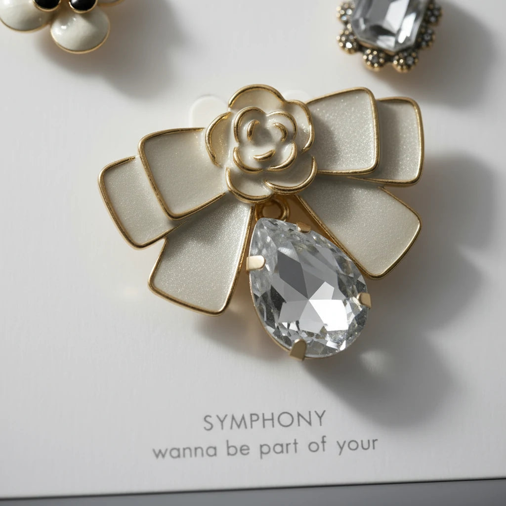 Valorizza ogni outfit con questo set di 3 spille donna dallo stile raffinato: spilla maxi a fiocco dorato con grande cristallo a goccia pendente, spilla camelia smaltata con dettagli perla e una mini spilla fiore perlato con centro nero. Realizzate in metallo placcato oro, smalto lucido e cristalli sintetici, sono leggere, facili da fissare e perfette su blazer, cappotti, sciarpe e borse. Ideali per matrimoni, cerimonie, serate e come regalo elegante per lei.