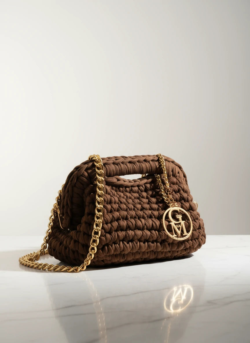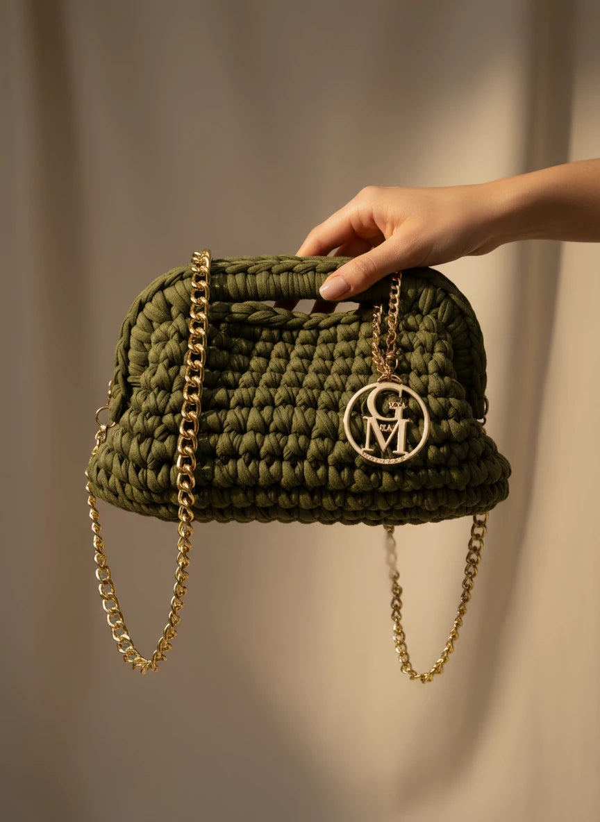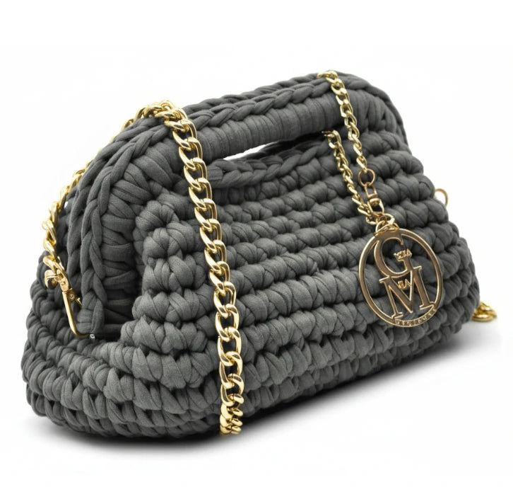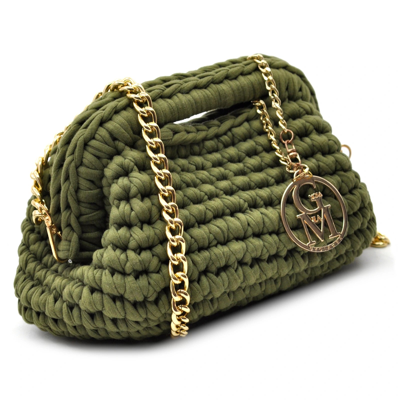 La Giusy - Borsa clutch bag firmata fatta a mano borsetta chiusura a molla uncinetto fettuccia