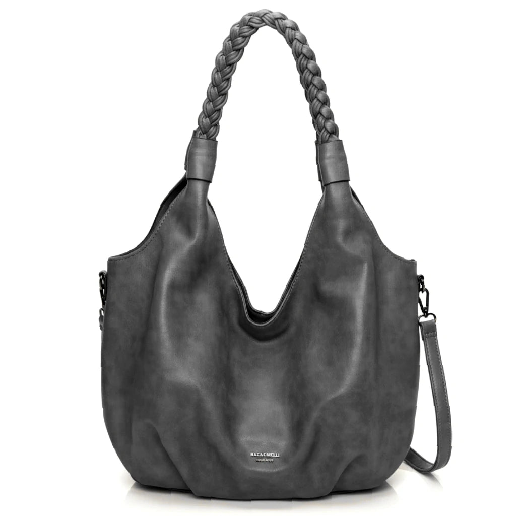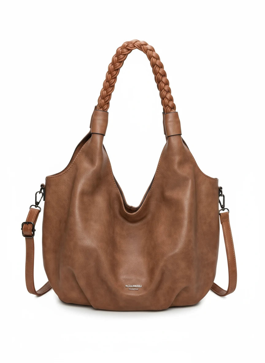Borsa a sacco firmato COCONUDA Colletion donna spalla a tracolla simil pelle nuova manici intrecciati