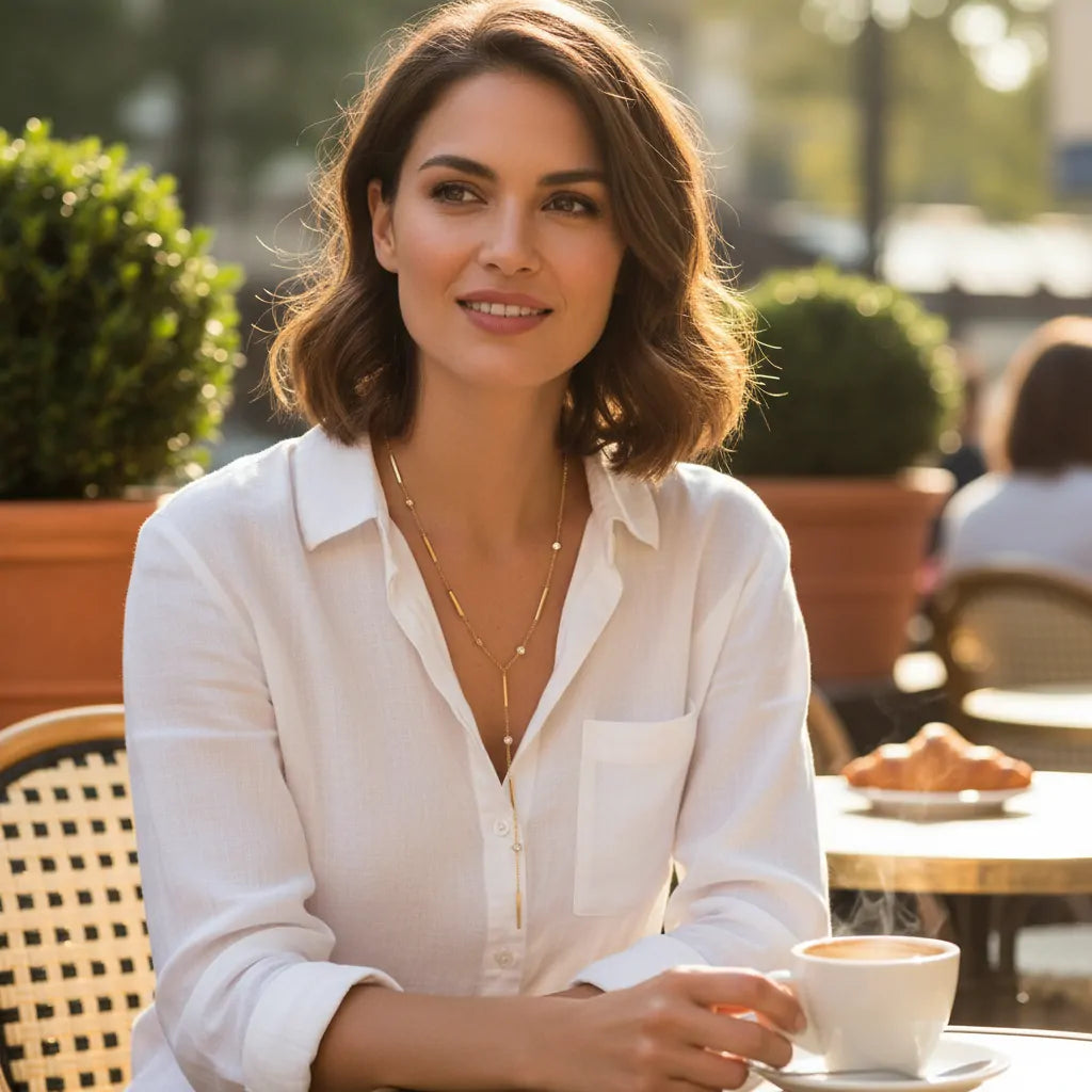 Design Lariat: La forma a "Y" (o a cravattina) è celebre per la sua capacità di slanciare otticamente il collo e il décolleté, rendendola l'accessorio ideale per valorizzare scolli a V o camicie leggermente aperte.