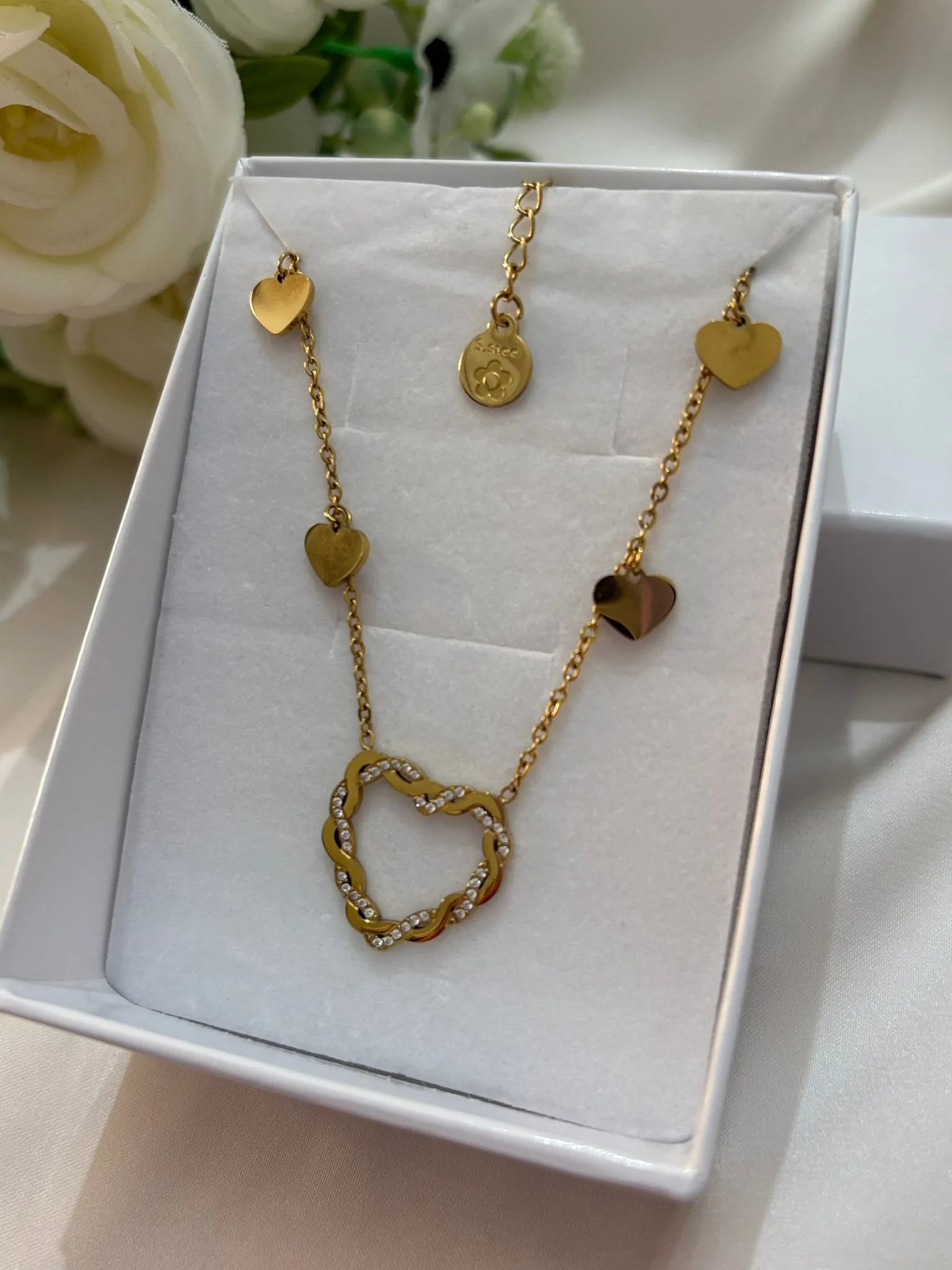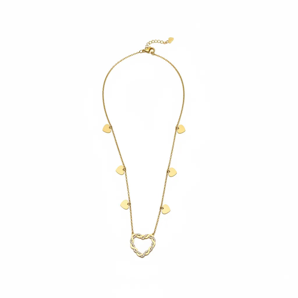Girocollo Donna con Grande Cuore Brillante e Charms - Acciaio Inox