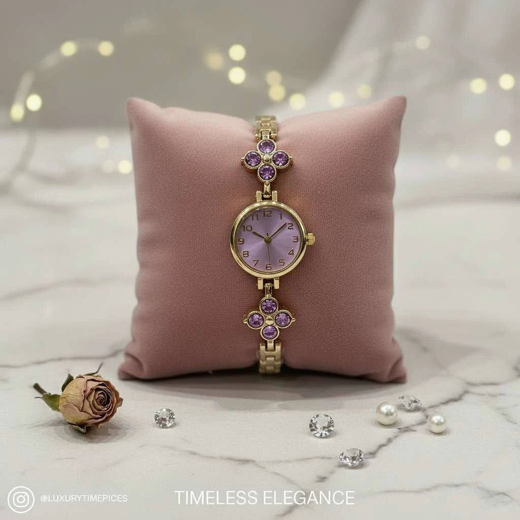 Orologio Gioiello "Ninfea" Gold con Motivi Floreali e Cristalli