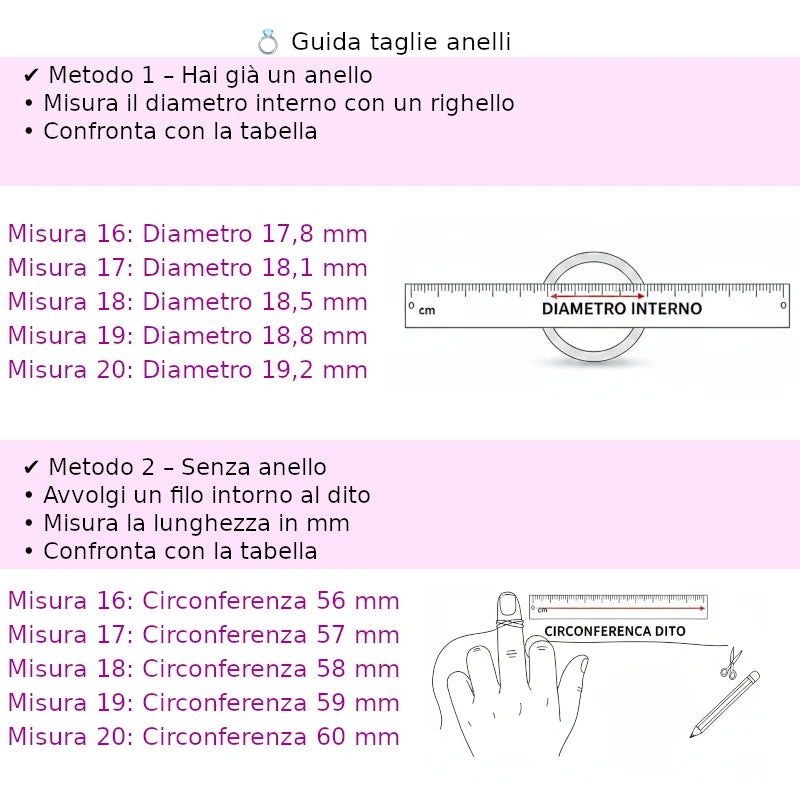 I nostri anelli sono disponibili dalla misura 16 alla 20.