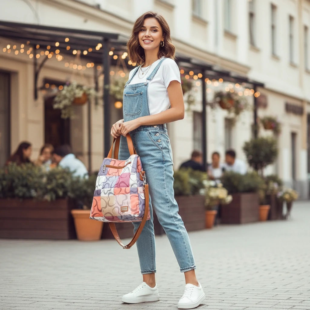 Zaino 2in1 trasformabile donna firmato Baci&Abbracci multitasche fantasia logo impermeabile zip zainetto