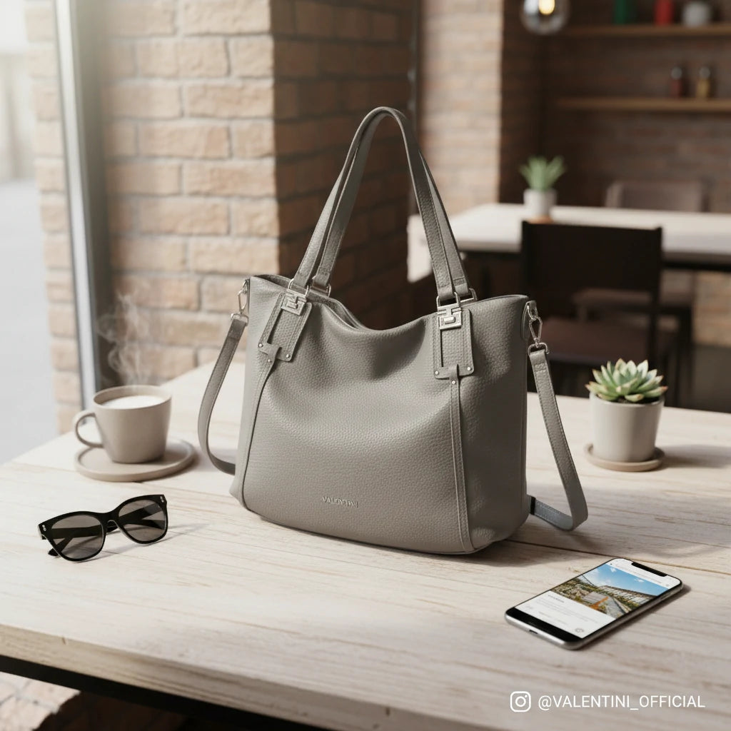 Borsa shopping a spalla grande VALENTINI tracolla casual simil pelle venata