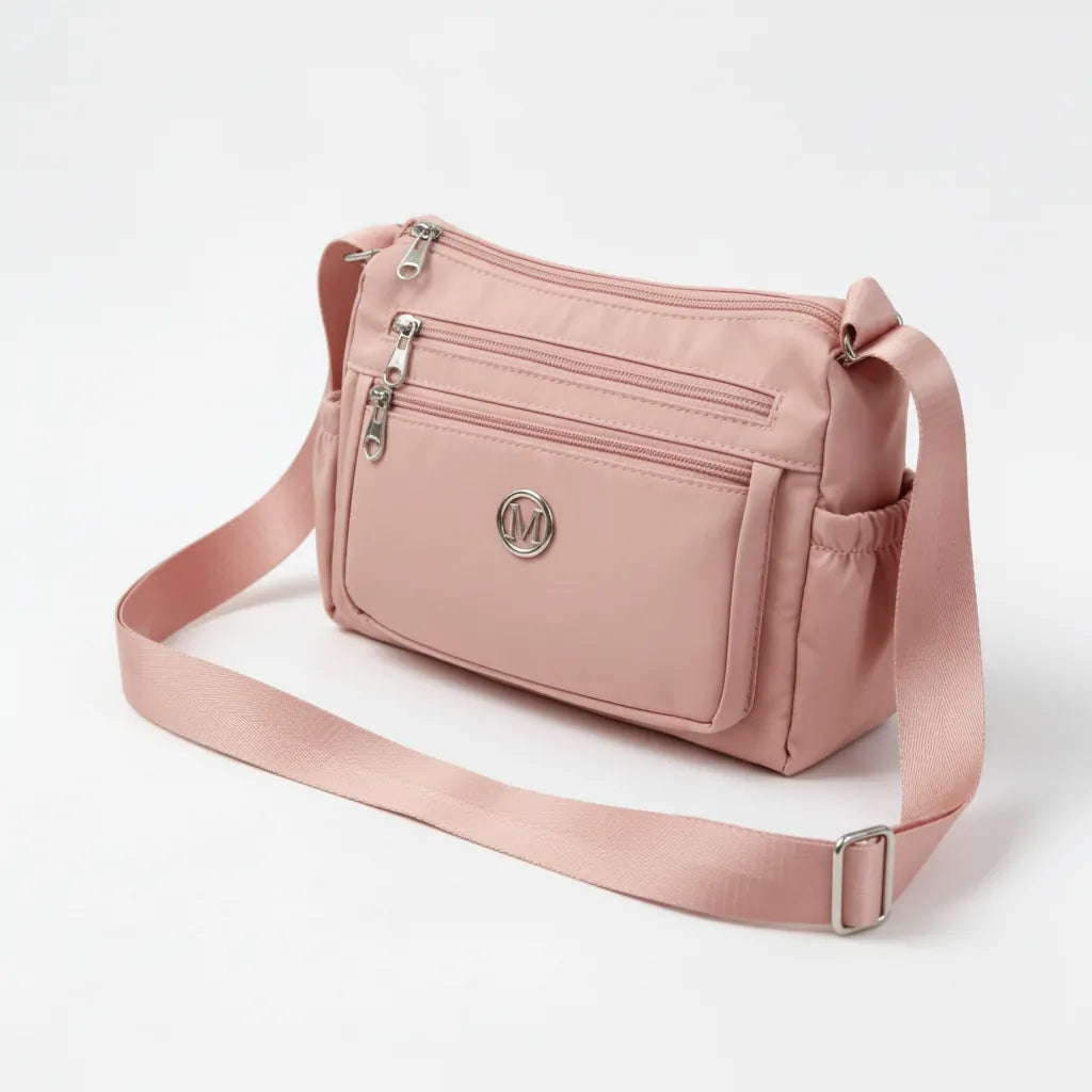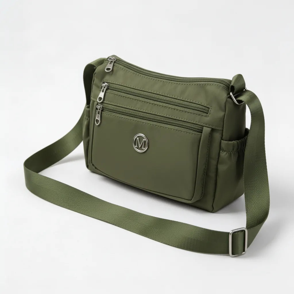 Dotata di multiple tasche con zip e una tracolla regolabile, ti permette di organizzare tutto con facilità e di portarla comodamente tutto il giorno.