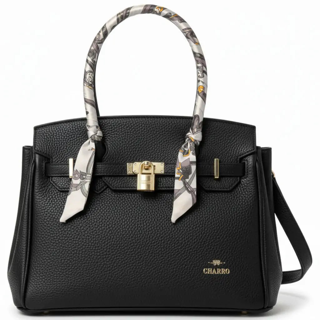 CHARRO - Borsa firmata a spalla Mano con Foulard e Lucchetto simil pelle martellata