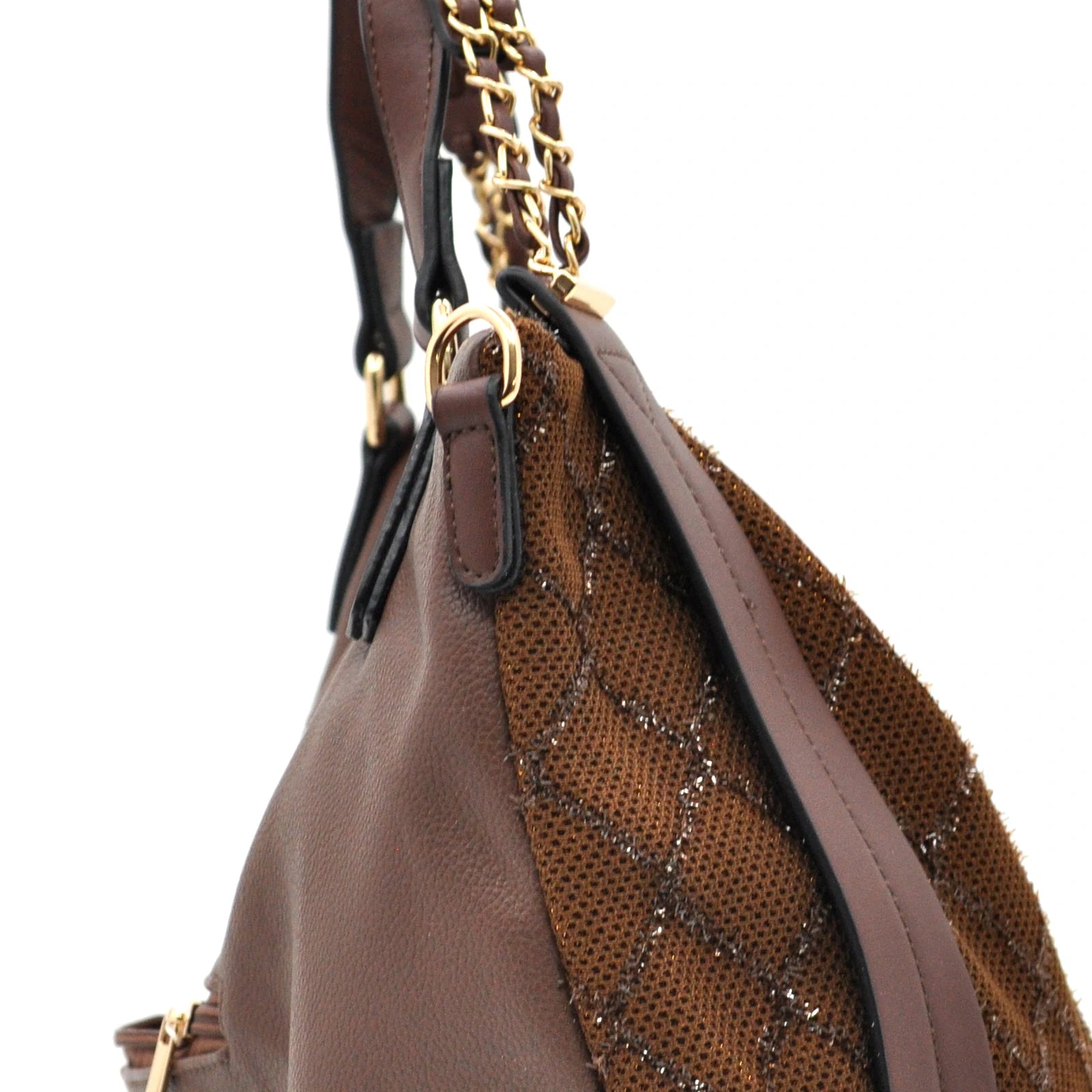 CHARRO - Borsa morbida a sacco hobo capiente unica tinta nuovo shopping manici a catena trapuntata