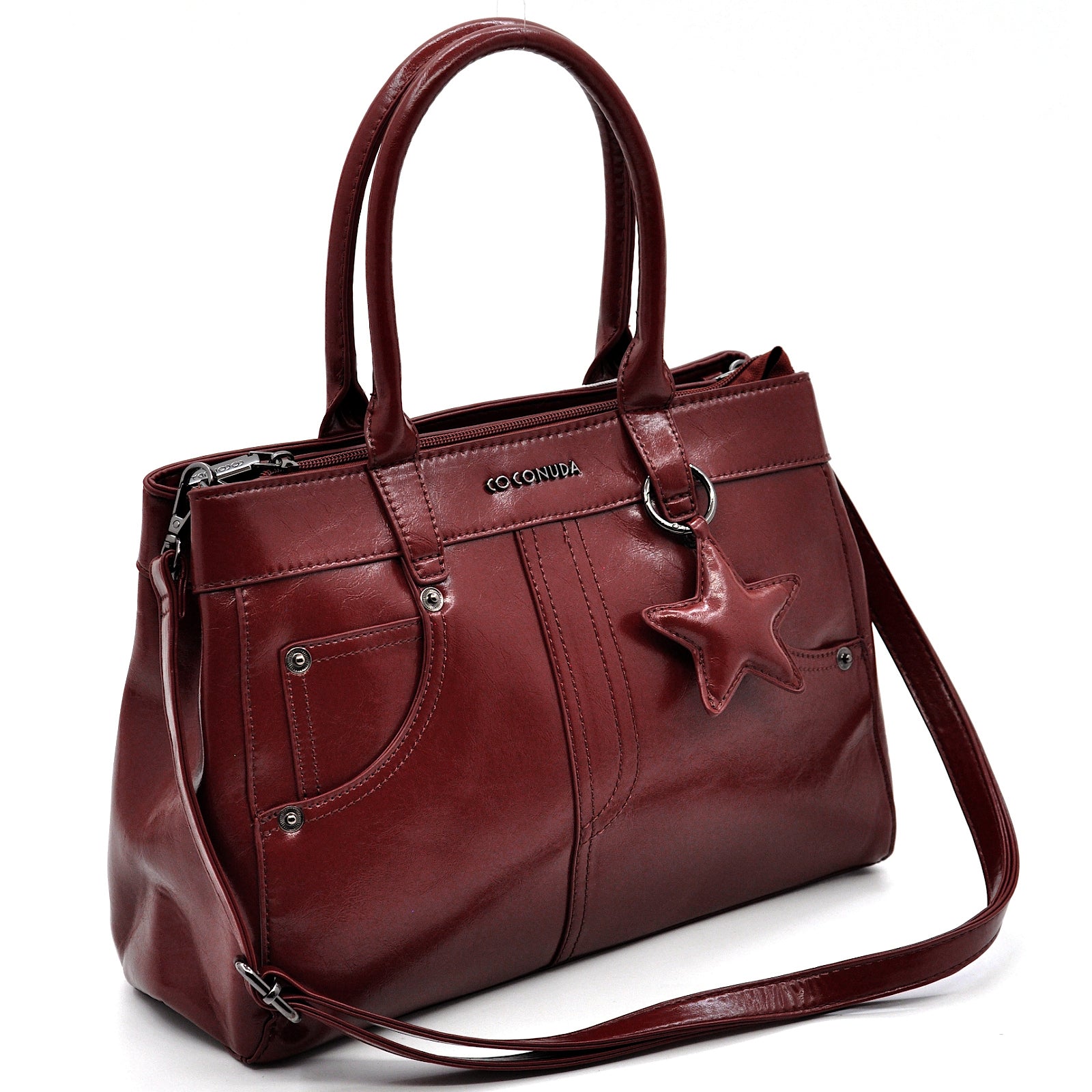 Borsa bauletto biker firmato COCONUDA donna spalla a tracolla simil pelle effetto lucido vintage