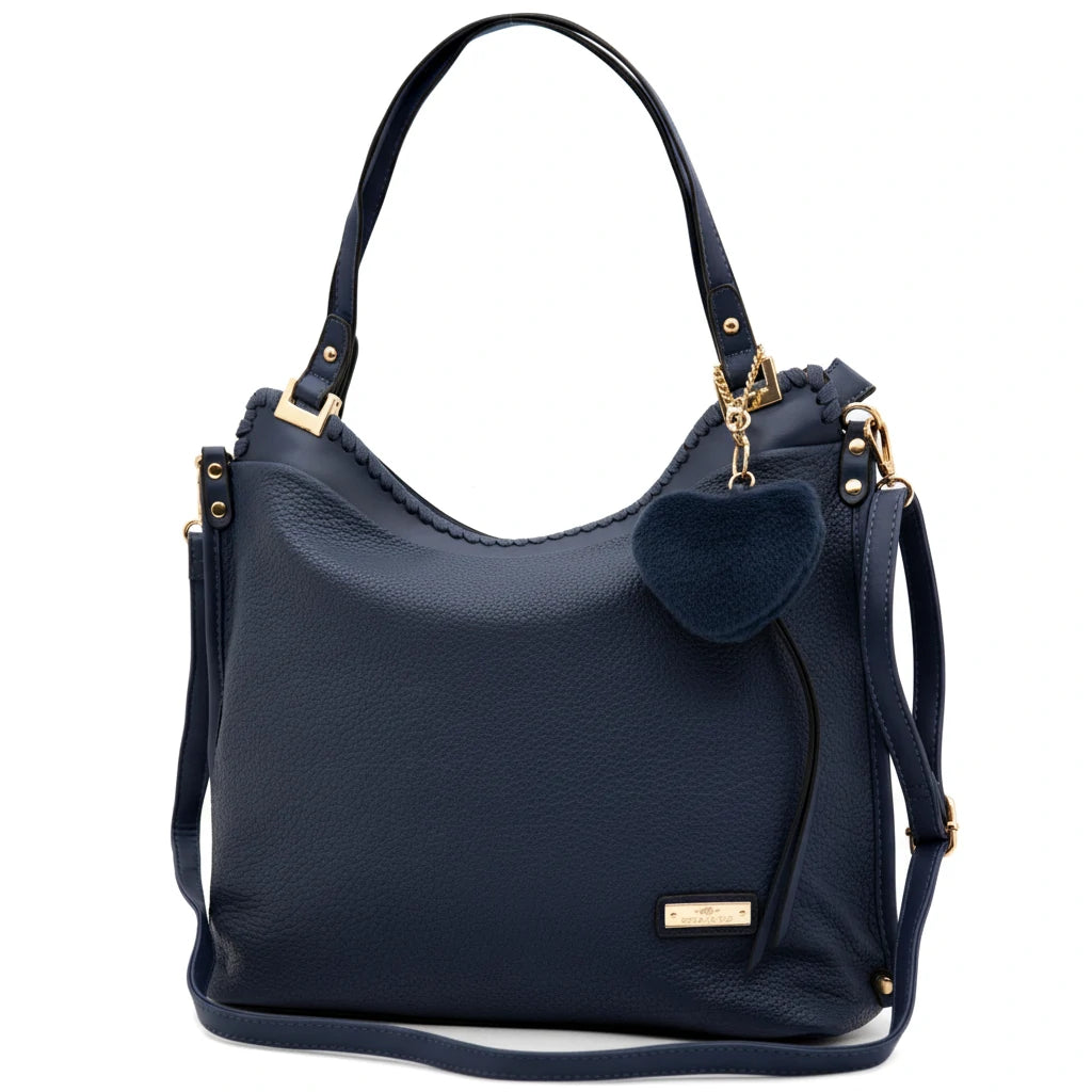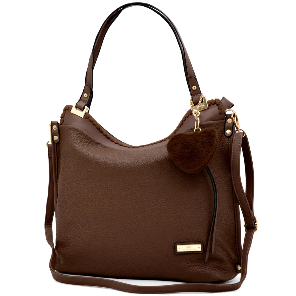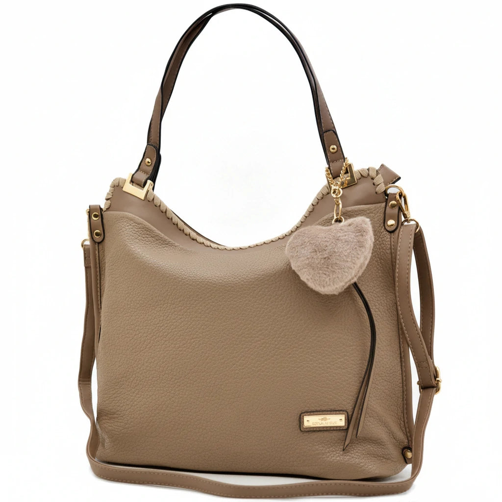 CHARRO - Borsa shopping pon pon cuore a spalla grande tracolla casual simil pelle venata
