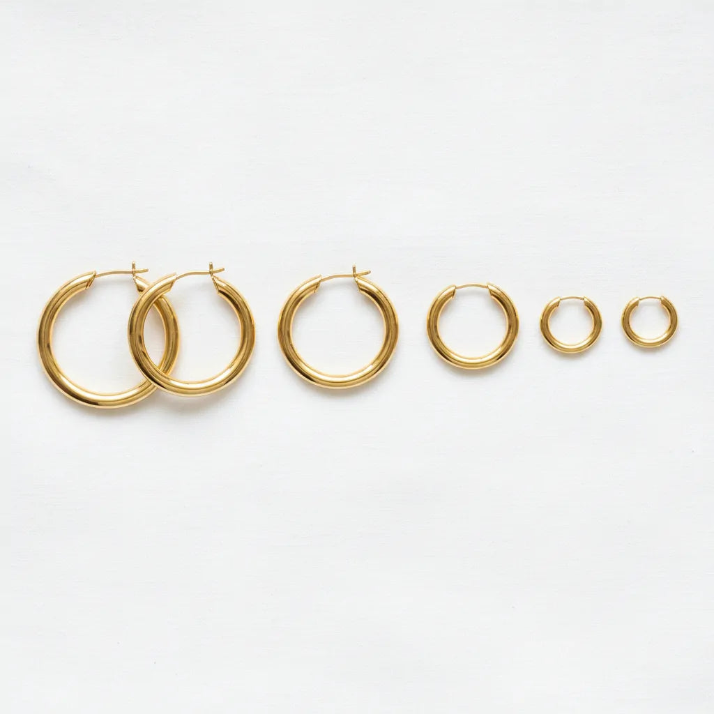 Set 6 Orecchini a Cerchio in Acciaio Inossidabile Oro – 3 Misure (Small, Medium, Large) – Impermeabili e Ipoallergenici